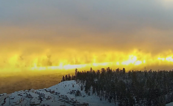 Cực quang tạo hình như đám cháy được tạo ra bởi sương mù lạnh giá và ánh nắng mặt trời ở Bắc Cực.