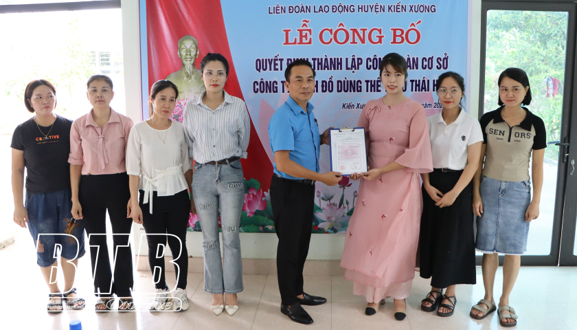 Chiều ngày 21/9, Liên đoàn Lao động (LĐLĐ) huyện Kiến Xương tổ chức công bố quyết định thành lập công đoàn cơ sở tại Công ty TNHH đồ dùng thể thao Thái...