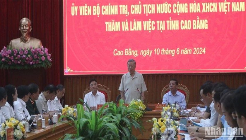 Tiếp tục chuyến thăm và làm việc tại tỉnh Cao Bằng, ngày 10/6, Chủ tịch nước Tô Lâm và đoàn công tác đã làm việc với lãnh đạo chủ chốt tỉnh Cao Bằng.