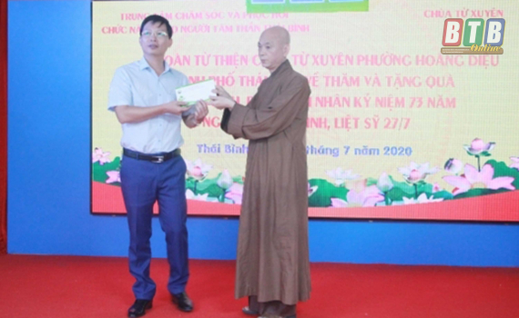 Ngày 14/5, đại diện chư tăng, Phật tử chùa Từ Xuyên (phường Hoàng Diệu, thành phố Thái Bình) đã trao 7 tạ gạo, 20 thùng nước lọc và một số nhu yếu phẩm...