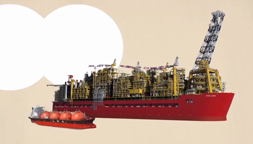 Prelude FLNG, bệ nổi khai thác khí tự nhiên hóa lỏng hoạt động tại vùng biển Australia, được chế tạo từ 260.000 tấn thép.
