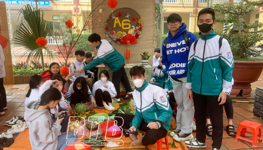 Hoạt động trải nghiệm gói bánh chưng tại Trường THPT Mê Linh