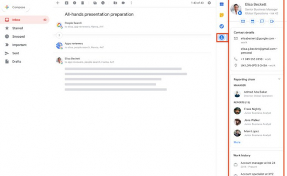 Google vừa công bố một bản cập nhật mới cho Gmail, nhằm mang thêm thông tin về danh bạ của người dùng vào bảng điều khiển bên.