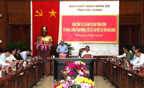 Đoàn công tác của Ban Chỉ đạo Trung ương về phòng, chống tham nhũng, tiêu cực làm việc tại Hậu Giang