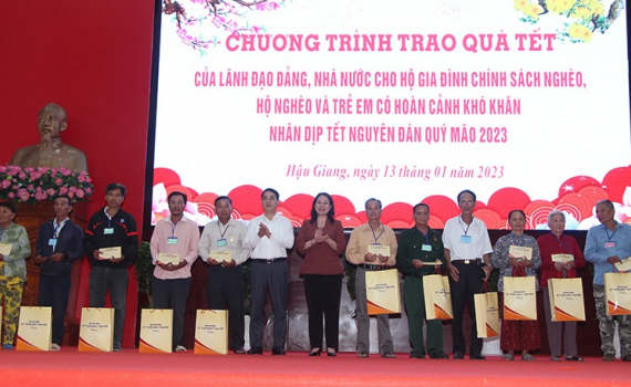 Phó Chủ tịch nước trao quà cho gia đình chính sách nghèo, hộ nghèo tại Hậu Giang