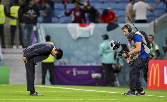 Huấn luyện viên Hajime Moriyasu đã "gây bão mạng" với hình ảnh cúi gập người cảm ơn các cổ động viên sau khi đội tuyển Nhật Bản phải chịu dừng bước trước...