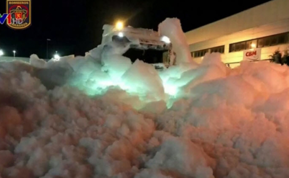 Bọt chữa cháy phủ kín đường phố Tây Ban Nha
