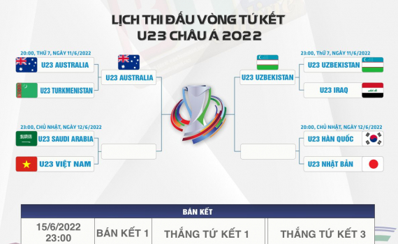 Trong lượt trận bán kết ngày 11/6 đã xác định 2 đội U23 Australia và U23 Uzbekistan đã lọt vào vòng bán kết U23 Châu Á sau loạt trận bán kết 1, 2 khép...