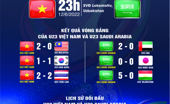 Cuộc so tài giữa U23 Việt Nam – U23 Saudi Arabia sẽ diễn ra vào lúc 23h (giờ Việt Nam) ngày 12/6/2022 trên sân vận động Lokomotiv, Uzbekistan.