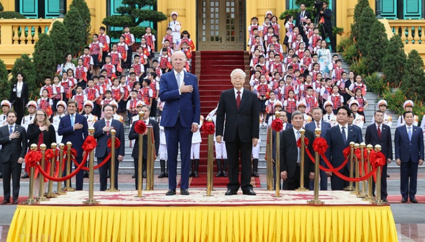 Nhận lời mời của Tổng Bí thư Ban Chấp hành Trung ương Đảng Cộng sản Việt Nam Nguyễn Phú Trọng, Tổng thống Hợp chúng quốc Hoa Kỳ Joe Biden đã đến Thủ đô Hà...