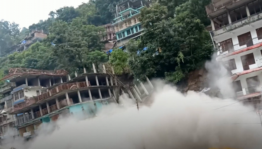 Các tòa nhà cao tầng liên tiếp đổ sập sau trận lở đất tại Anni, bang Himachal Pradesh, Ấn Độ.