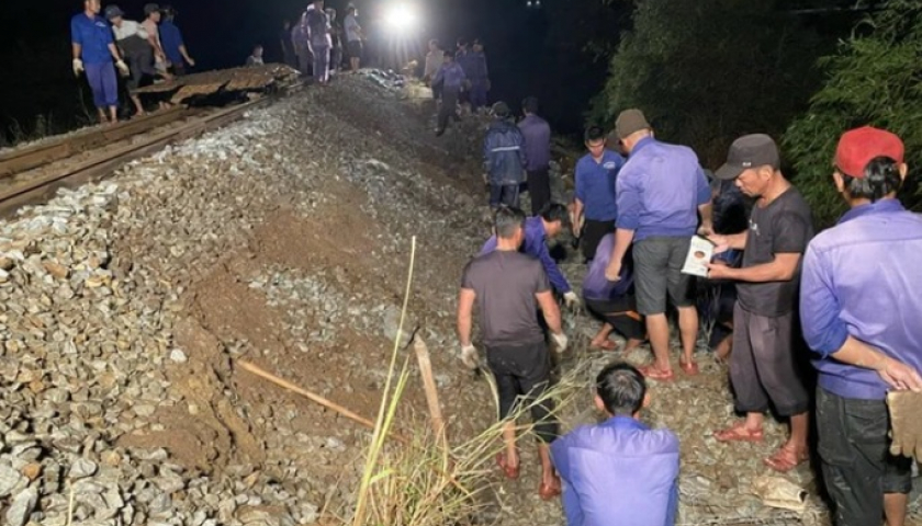 Tuyến đường sắt Hà Nội - Lào Cai bị sạt trượt tại Yên Bái đã khắc phục xong, sau 2 ngày đêm làm việc liên tục.