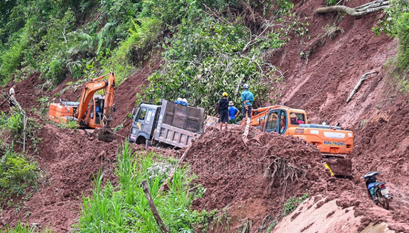Quốc lộ 32 huyết mạch nối Hà Nội với Lai Châu sạt lở nhiều điểm đoạn qua tỉnh Yên Bái khiến giao thông tê liệt.
