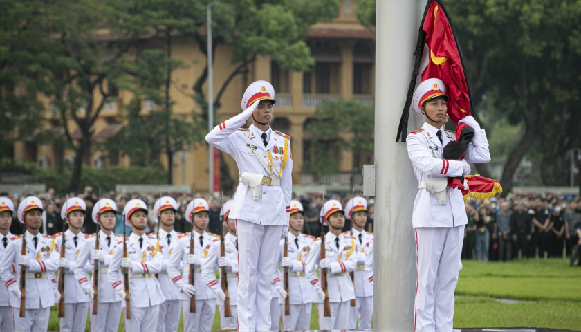 Lễ thượng cờ theo nghi thức Quốc tang ở Quảng trường Ba Đình