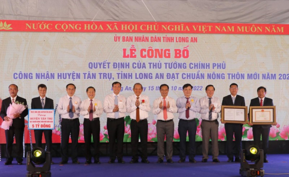 Ngày 15/10, Ủy ban nhân tỉnh Long An tổ chức Lễ công bố Quyết định của Thủ tướng Chính phủ công nhận huyện Tân Trụ đạt chuẩn nông thôn mới.