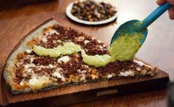 Sử dụng bột ngô xanh làm đế bánh cùng các nguyên liệu bản địa như châu chấu, atiso... Alejandro Souza đã sáng tạo ra chiếc pizza mang đậm hương vị...