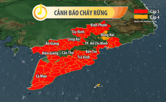 Toàn bộ 19 tỉnh thành Nam Bộ cảnh báo cháy rừng "cực kỳ nguy hiểm"
