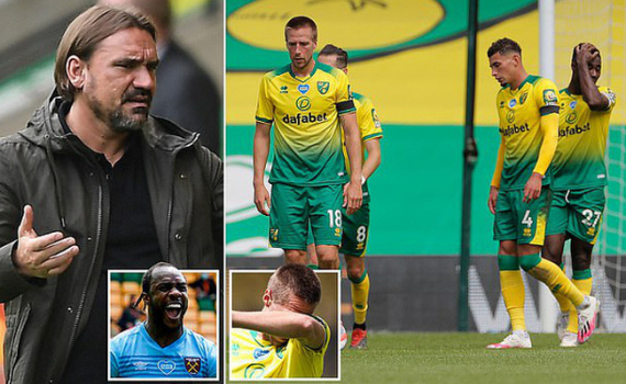 Norwich để thua West Ham với tỉ số 0-4 qua đó chính thức trở thành đội bóng đầu tiên của Ngoại hạng Anh mùa này phải xuống hạng.