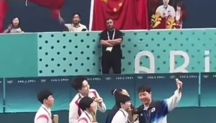 Trong lễ trao huy chương Bóng bàn nội dung đôi nam nữ ở Olympic Paris 2024, các VĐV Hàn Quốc đã chụp "wefie" với các đồng nghiệp Triều Tiên và Trung...