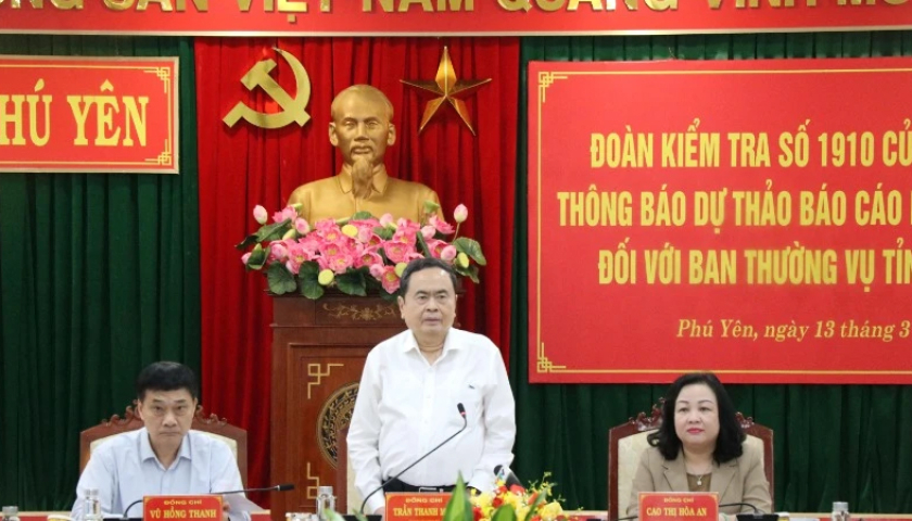 Chủ tịch Quốc hội Trần Thanh Mẫn, Trưởng Đoàn Kiểm tra 1910 của Bộ Chính trị làm việc tại Phú Yên
