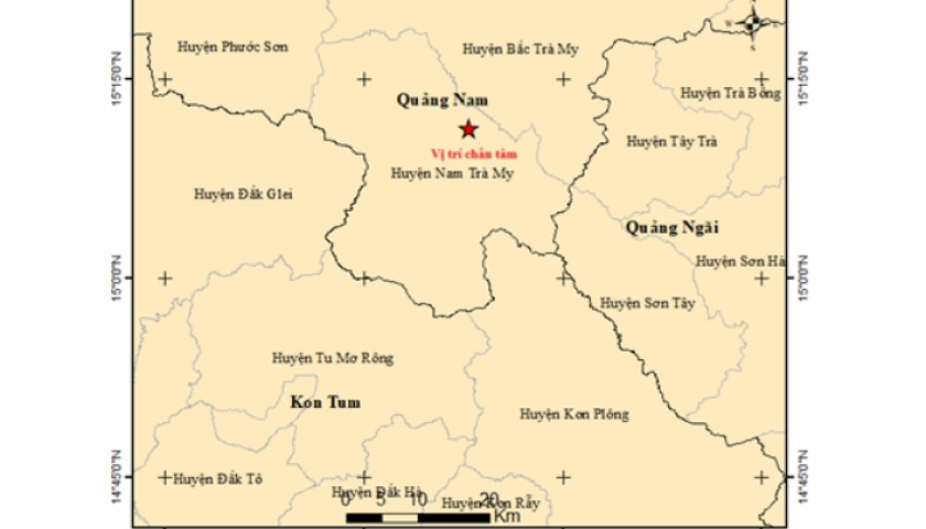 Thời điểm 21h13 ngày 13/6, một trận động đất đã xảy ra tại huyện Bắc Trà My, tỉnh Quảng Nam.