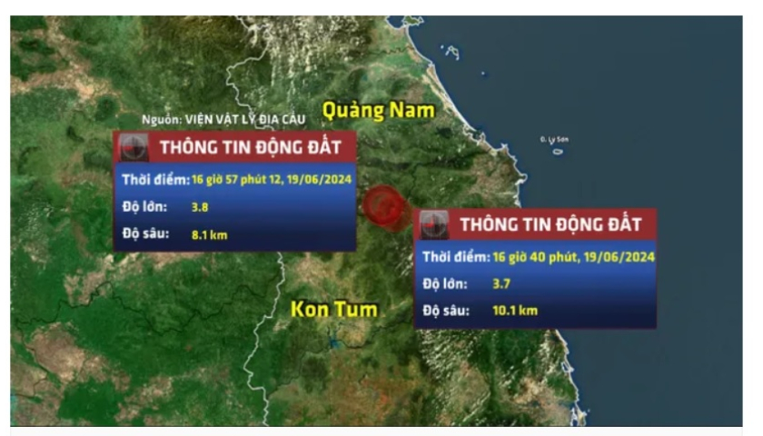 Chiều nay (19/6), 3 trận động đất đã liên tiếp xảy ra ở huyện Nam Trà My, tỉnh Quảng Nam và huyện Kon Plông, Kon Tum.