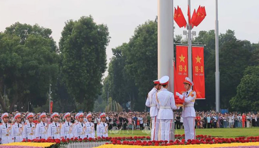 Chào mừng 79 năm ngày Quốc khánh 2/9, nghi lễ thượng cờ cấp quốc gia được tổ chức trọng thể tại Quảng trường Ba Đình (Hà Nội).