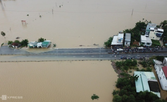 Nhiều đoạn quốc lộ 1 và đường sắt Bắc Nam qua tỉnh Quảng Nam, Quảng Ngãi bị chia cắt vì ngập nước, sạt lở nền đường.