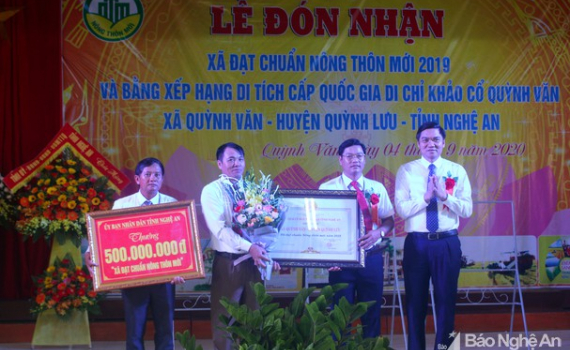 Sáng 4/9, xã Quỳnh Văn, huyện Quỳnh Lưu tổ chức lễ đón nhận Quyết định công nhận xã đạt chuẩn nông thôn mới và Bằng công nhận di tích lịch sử cấp Quốc gia...