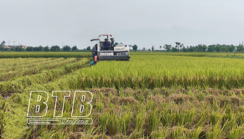 Quỳnh Phụ: Đẩy nhanh tiến độ thu hoạch lúa xuân