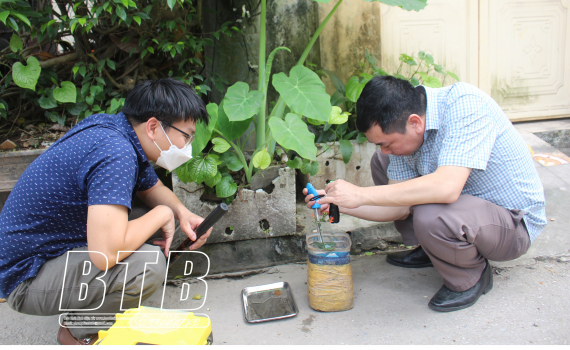 Giám sát muỗi, bọ gậy truyền bệnh sốt xuất huyết tại phường Quang Trung