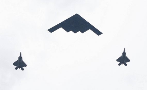 Các khí tài bay hiện đại nhất của Mỹ trình diễn trên bầu trời thủ đô Washington trong lúc Tổng thống Trump phát biểu mừng ngày quốc khánh.