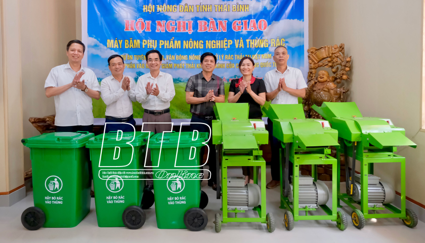 Bàn giao máy băm phụ phẩm nông nghiệp và thùng đựng rác cho hội viên, nông dân