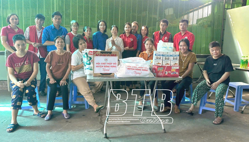 Hội Chữ thập đỏ và Đoàn Thanh niên huyện Đông Hưng tổ chức hoạt động thiện nguyện tại gia đình bà Đặng Thị Nụ