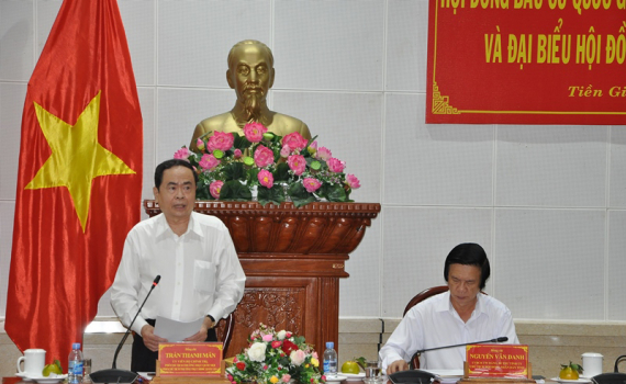 Đồng chí Trần Thanh Mẫn kiểm tra công tác chuẩn bị bầu cử tại tỉnh Tiền Giang