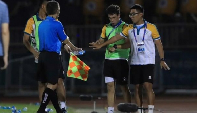 Trợ lý Mai Xuân Hợp không hài lòng với trọng tài Lê Vũ Linh bắt trận TP HCM vs Thanh Hóa.