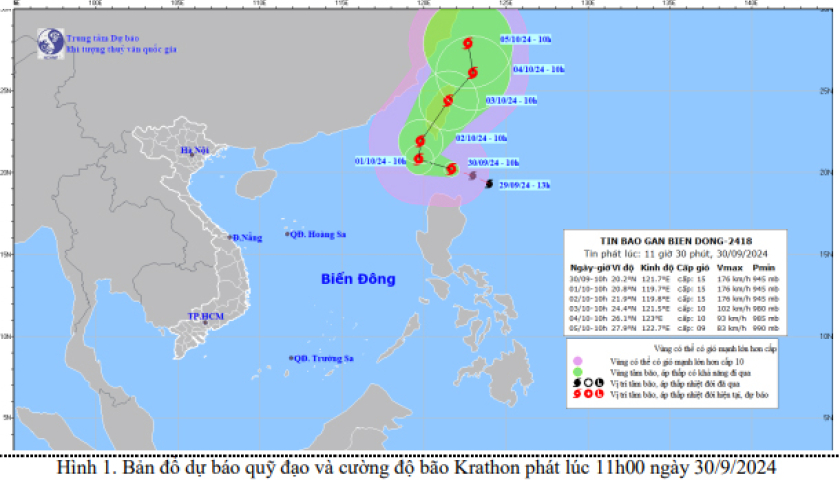 Trung tâm Dự báo khí tượng thủy văn quốc gia cho biết, hiện nay (30/9), một cơn bão rất mạnh có tên quốc tế là Krathon đang hoạt động ở vùng biển phía Bắc...