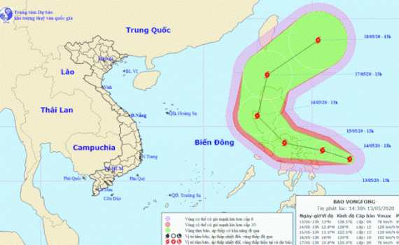 Hồi 07 giờ ngày 14/5, vị trí tâm bão ở vào khoảng 12,2 độ Vĩ Bắc; 126,2 độ Kinh Đông, cách bờ biển miền Trung Phi-líp-pin khoảng 150km về phía Đông. Sức...