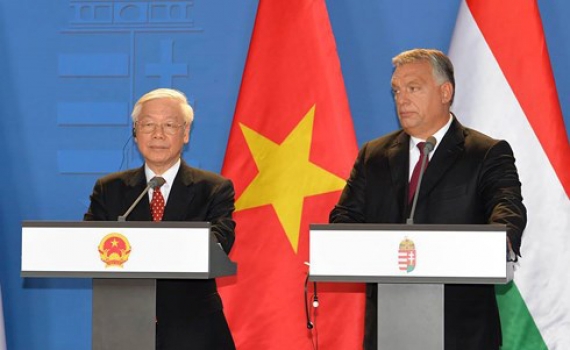 Ngay sau hội đàm và chứng kiến lễ ký kết các văn kiện hợp tác giữa hai nước, Tổng Bí thư Nguyễn Phú Trọng cùng Thủ tướng Hungary Viktor Orban (Vích-to...