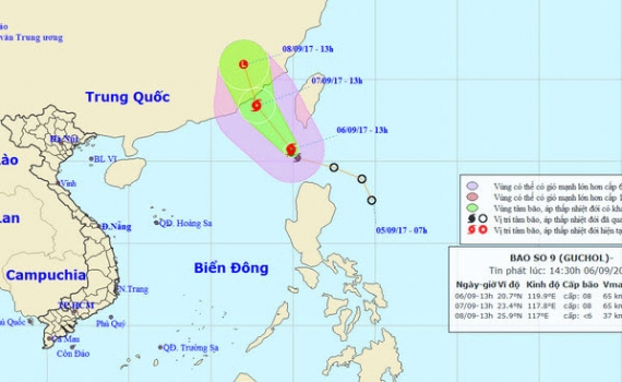 Theo Trung tâm Dự báo Khí tượng Thủy văn Trung ương, sáng 6/9, áp thấp nhiệt đới đã mạnh lên thành bão và có tên quốc tế là Guchol.