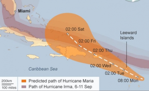 BBC đưa tin ngày 19/9, bão Maria đã mạnh lên cấp 5 và “có nguy cơ gây ra thảm họa” khi đổ bộ vào Dominica thuộc quần đảo Caribe với sức gió lên tới...
