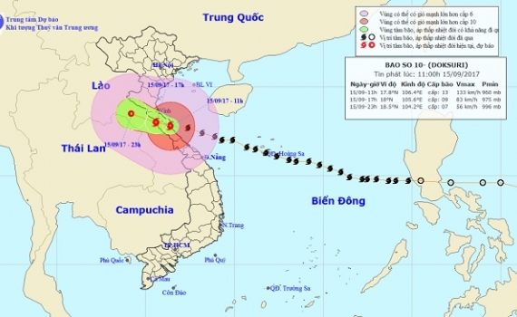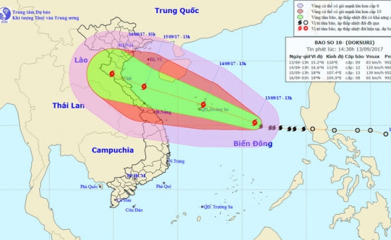 Hồi 13 giờ ngày 13/09, vị trí tâm bão ở vào khoảng 15,2 độ Vĩ Bắc; 116,0 độ Kinh Đông, cách quần đảo Hoàng Sa khoảng 450km về phía Đông Đông Nam. Sức gió...