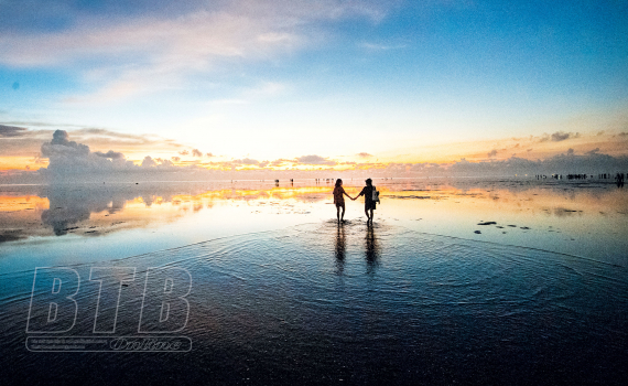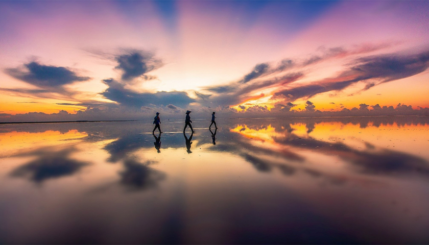 Mặt biển phẳng lặng phản chiếu những tia nắng rực rỡ của buổi sớm mai, tạo nên không gian mênh mang, vô hạn là điểm khiến bãi biển vô cực tại Thái Bình...