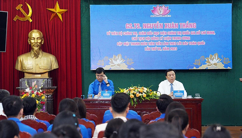Gặp mặt các đại biểu dự Đại hội Thanh niên tiên tiến làm theo lời Bác lần thứ VII - năm 2023, đồng chí Nguyễn Xuân Thắng, Ủy viên Bộ Chính trị, Giám đốc...