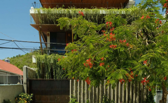 Lồng sắt làm chỗ cho cây leo, tạo nên lớp vỏ bảo vệ công trình khỏi tiếng ồn, bụi bặm và đưa con người lại gần thiên nhiên.