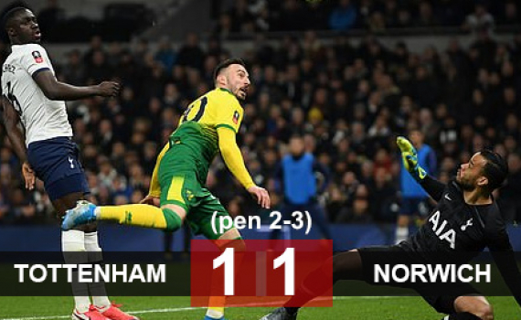 Tottenham 1-1 (pen 2-3) Norwich: Thua trận thứ 4 liên tiếp, Tottenham dừng bước ở vòng 5 cúp FA