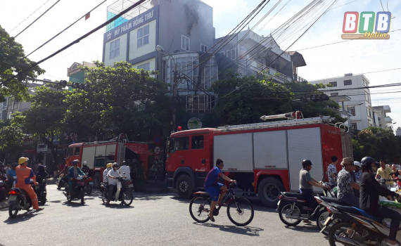 Ngọn lửa và khói bốc lên từ gian bếp trên tầng 2 cửa hàng kinh doanh nông sản thực phẩm sạch giữa trung tâm thành phố Thái Bình. Chưa thống kê được thiệt...