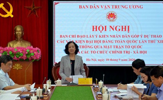 Đồng chí Trương Thị Mai, Ủy viên Bộ Chính trị, Bí thư Trung ương Đảng, Trưởng Ban Dân vận Trung ương đề nghị việc lấy ý kiến Nhân dân góp ý vào các dự...