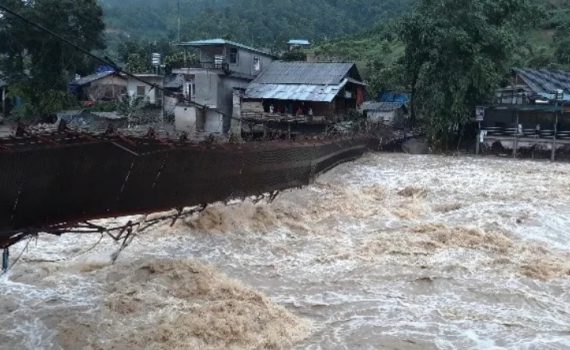 Lũ quét làm sập cầu treo, cô lập xã Bản Hồ ở Sa Pa