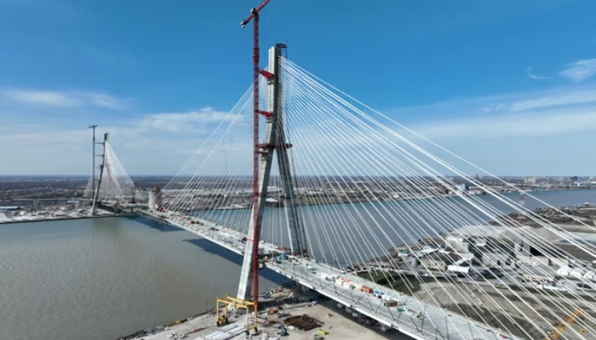 Cầu quốc tế Gordie Howe trên sông Detroit dài tổng cộng 2,5 km sẽ bao gồm 6 làn và dự kiến thông xe trong năm 2025.